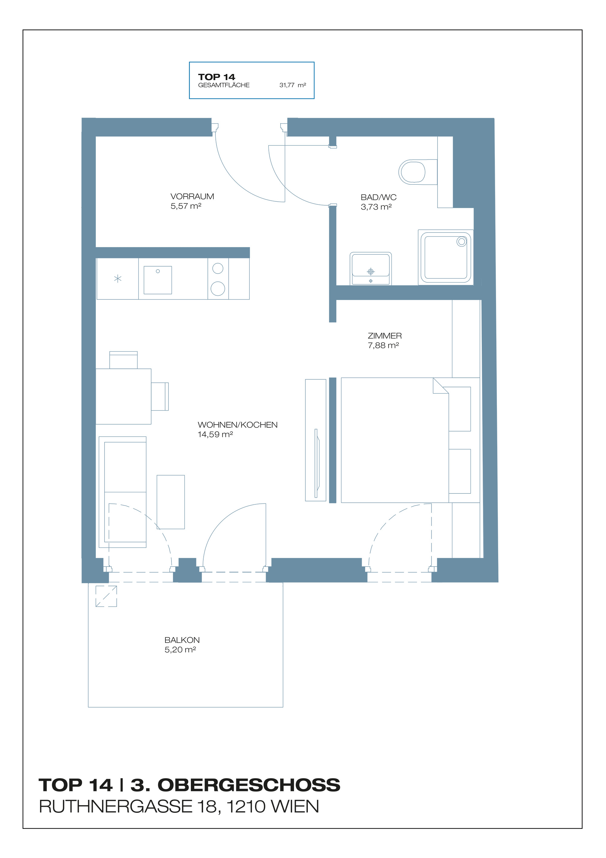 Dieses Apartment mit Balkon bietet alles für anspruchsvolles Wohnen. Die klaren Strukturen und hellen Räume schaffen eine Oase der Ruhe über den Dächern.
